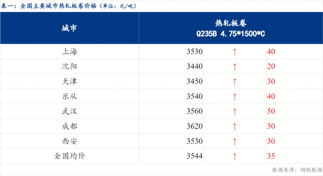 今日热轧板卷全国主要城市价格小幅上涨,截止发稿时3.0mm热轧板卷全国均价3603元/吨,较上个交易日上涨35元/吨。4.75mm热轧板卷全国均价3544元/吨,较上个交易日上涨35元/吨。今日黑色商品期货先扬后抑,热卷10合约收涨0.81%,早盘现货价格上涨,涨后高价成交受阻;午后期货高位回落,价格回调,整日成交表现偏弱。