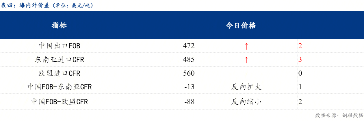 从海内外价差情况来看,中国热卷出口在472美元/吨,较上一交易日上涨2美元/吨 ;欧盟进口价格560美元/吨,较上一交易日持平。