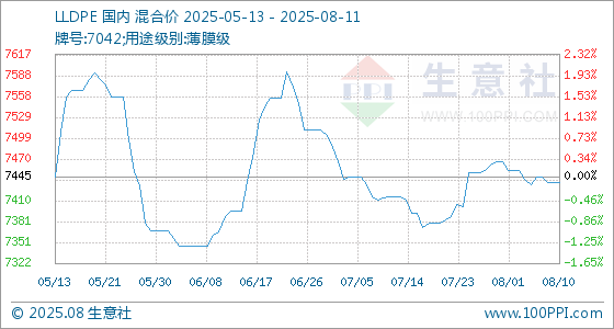 8月11日生意社LLDPE基准价为7436.67元/吨
