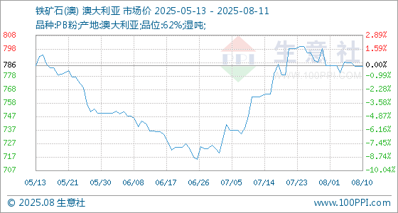 8月11日生意社铁矿石(澳)基准价为785.67元/吨