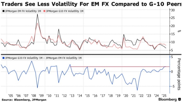 部分新兴市场央行出于通胀和关税担忧维持鹰派立场,进一步增强了套息交易的吸引力。