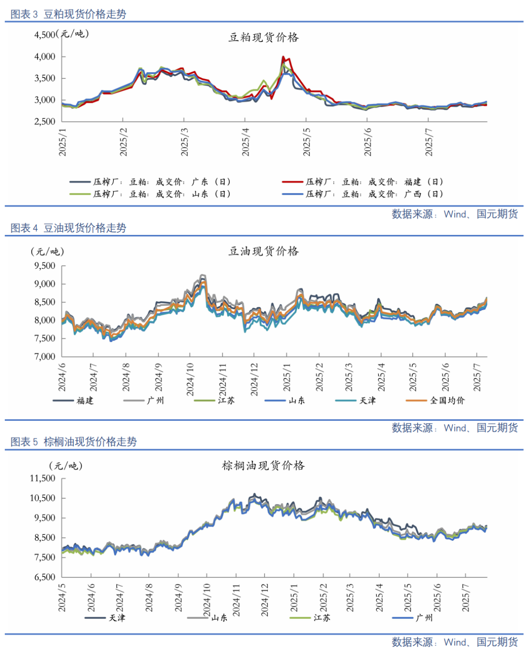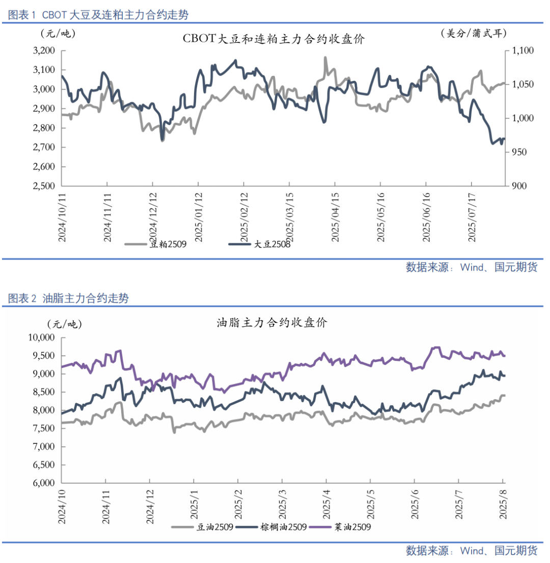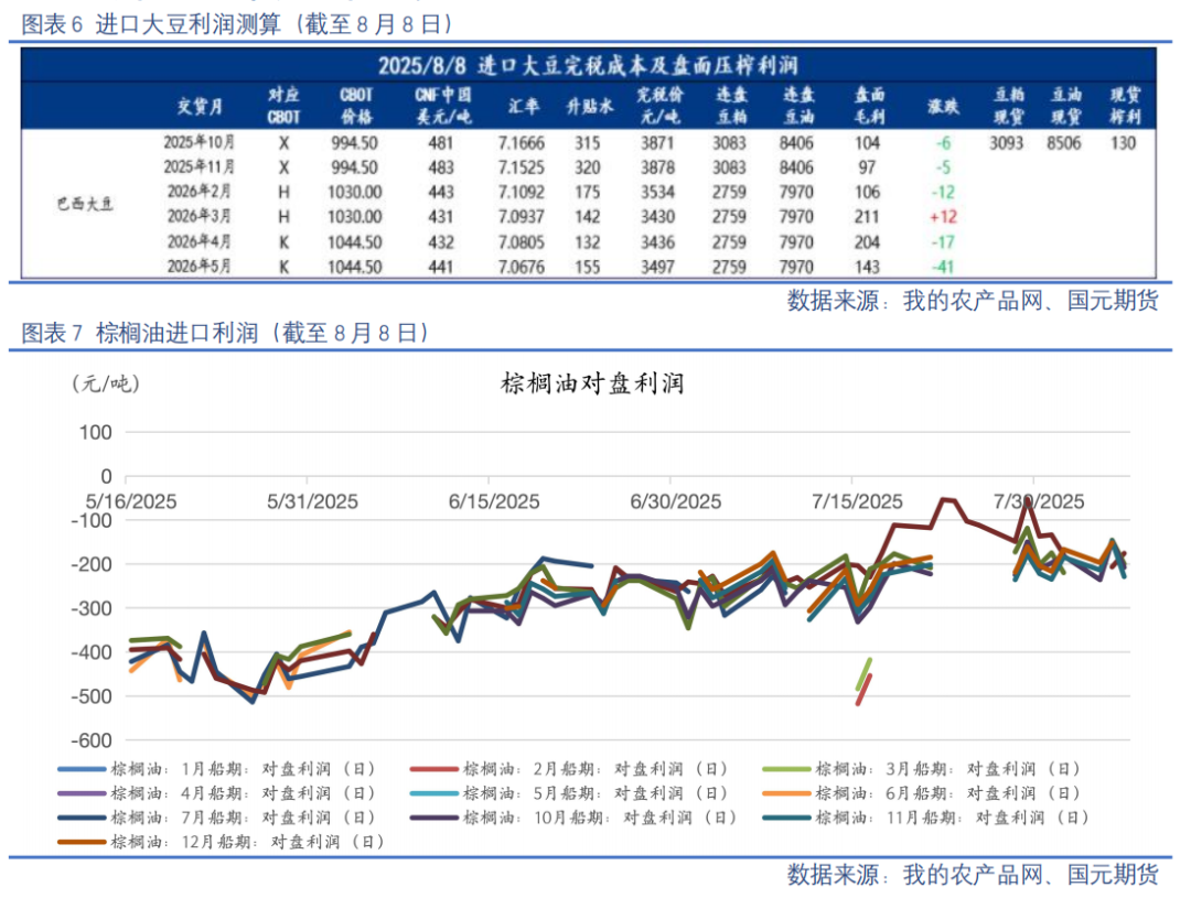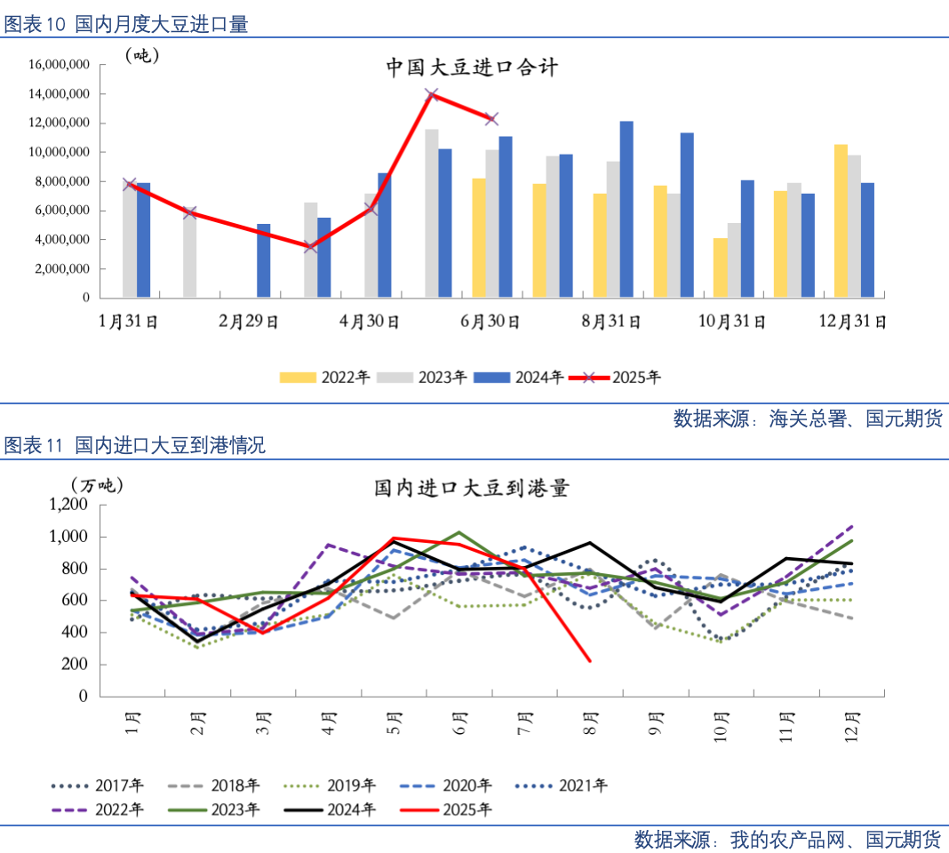 国内供需:8月上旬大豆到港量维持高位,周度压榨开机率保持相对稳定,豆粕产出充裕;下游饲料企业采购节奏平缓,养殖端需求暂无明显增量,豆粕库存延续累库趋势,市场去库压力仍存。