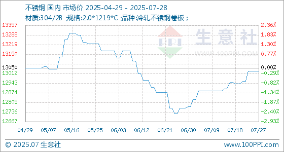 7月28日生意社不锈钢基准价为13030.00元/吨