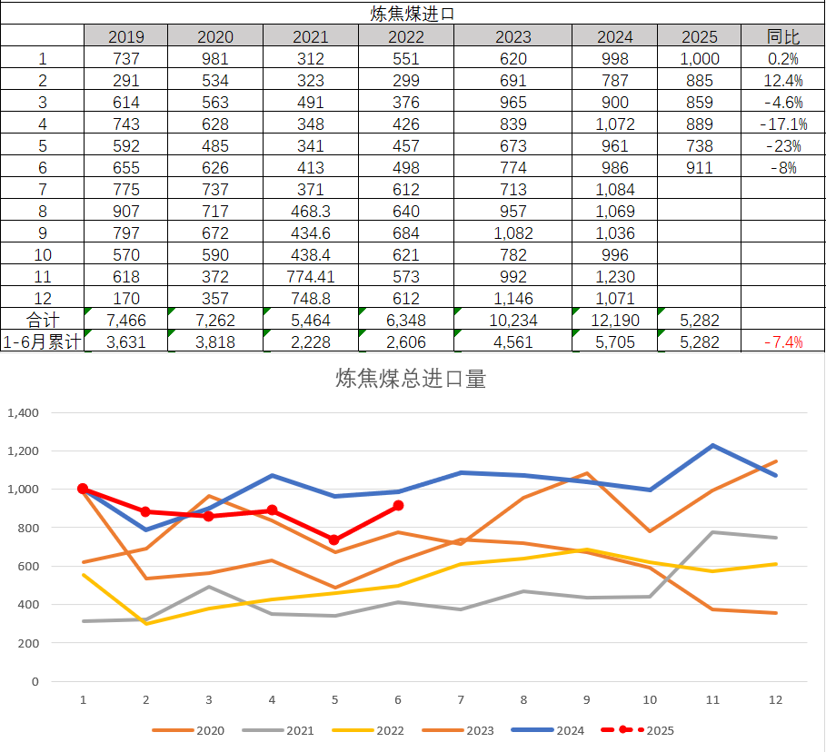 从煤矿产地开启环保检查,矿山和洗煤厂开工率超预期下滑,动力煤旺季逐步到来,动力煤止跌反弹和焦煤国内供应减少,带动下游刚需逐步补库。焦煤上游库存逐步消化,进口煤方面蒙古煤通关因那达慕节日受阻,进口减少。而需求端铁水产量因钢厂利润较好一直维持240万吨日均产量,导致焦煤刚需有较强支撑。后续煤矿超产整顿治理若持续推进的话,煤矿产量预计将持续受到影响,导致焦煤供需从宽松到逐步紧张的局面。