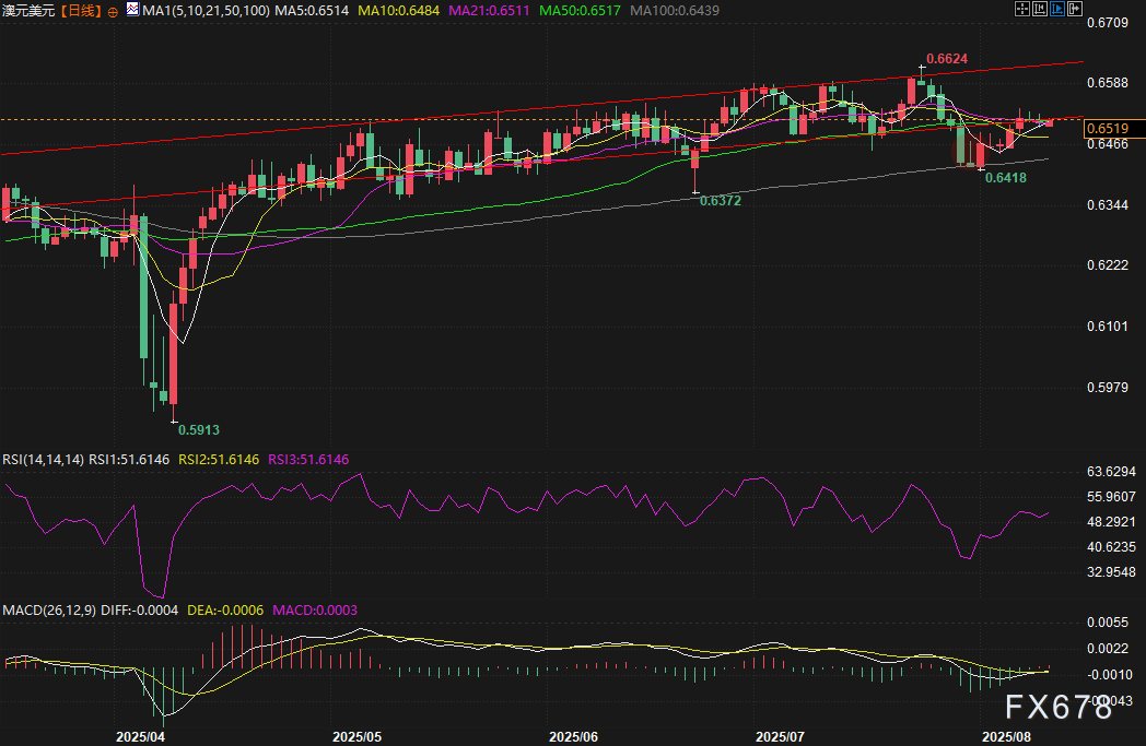 汇通财经APP讯——在本周二(8月12日)澳洲联储会议召开前,澳元保持稳定,现交投于0.6510附近,市场普遍预计澳洲联储将降息 25 个基点,尽管这一举措已被市场充分预计,但交易员们仍将关注货币政策声明的基调,以寻找今年是否有再次降息的线索。与此同时美国CPI即将发布可能给澳元汇价蒙上阴影。