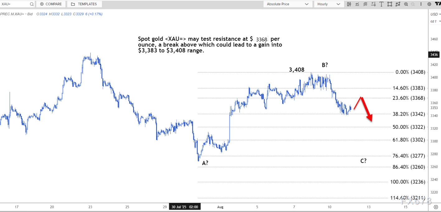 路透技术分析师指出,现货黄金可能测试每盎司 3368 美元的阻力位,突破该阻力位可能上涨至 3383-3408 美元区间。