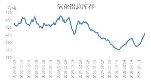 (3)库存变化。截止8月7日我国氧化铝总库存为414.4万吨,较前一周增加6.2万吨,增量主要来自电解铝厂内库存和港口库存,8月11日期货库存亦自低位回升至30381吨。