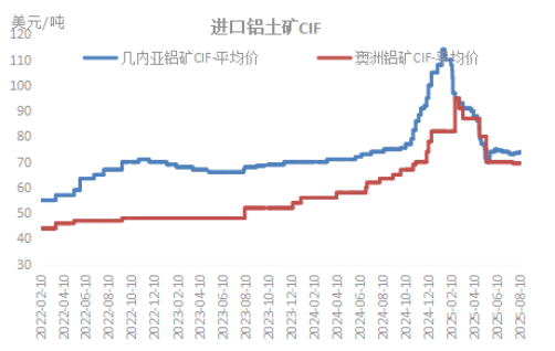 (1)原料端。国产铝土矿价格继续持稳运行,在几内亚雨季及当地部分矿区港口发运被叫停背景下,进口几内亚矿价格小幅上涨。