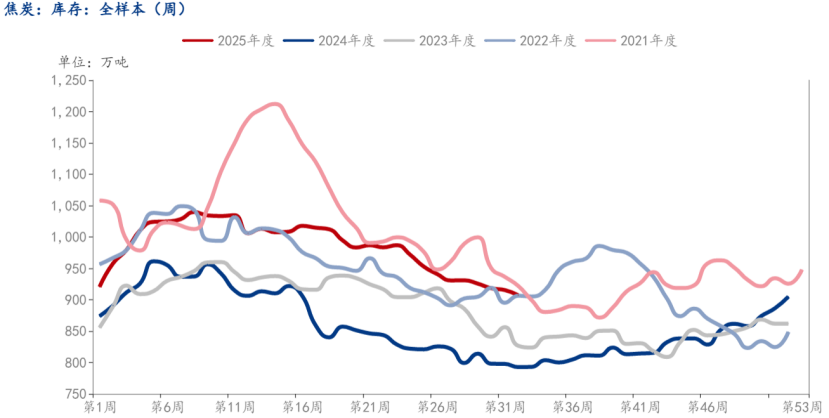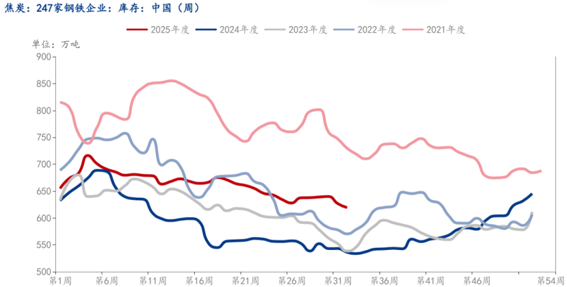 (4)钢厂高炉铁水产量维持高位,叠加价格上行带动投机需求升温,推动库存结构变动。独立焦企焦炭库存环比降5.28%至69.73万吨,钢厂焦炭库存减1.18%至619.28万吨,仅港口库存小幅增加,整体总库存刷新7个月新低,但同比增幅扩大至16.62%。