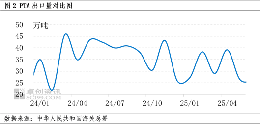 另外,中短期PTA出口预期并不乐观,在土耳其150万吨PTA新装置平稳运行之后,对中国PTA的刚需下降,5-6月份中国月均PTA出口量26万吨,较1-4月均值下降7.4万吨,较2024年月均值下降10.8万吨。8月PTA出口市场并无明显利好预期,土耳其PTA装置平稳运行,国外客户也缺乏投机囤货的意向,PTA出口预期不乐观将无法分散国内PTA供大于求的压力。