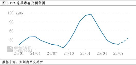 PTA现货基差下跌,可能导致后期PTA仓单数量上升。现货基差下跌是PTA供大于求的结果,PTA期货价格高于PTA现货价格,如果现货基差跌幅偏大,基差可以覆盖仓储、利息等注册仓单的成本,将导致PTA现货持续被注册成仓单。期货交割库作为PTA现货市场的蓄水池,仓单数量上升将减少PTA现货流通量,暂缓PTA供应压力。