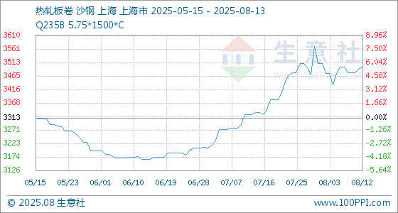 8月13日生意社热轧板卷基准价为3500.00元/吨