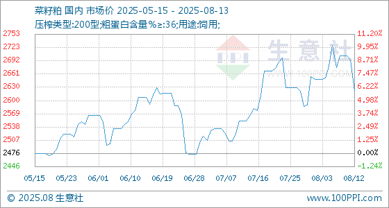 8月13日生意社菜籽粕基准价为2621.67元/吨