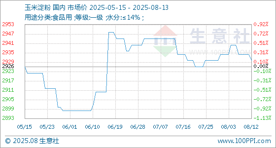 8月13日生意社玉米淀粉基准价为2930.00元/吨