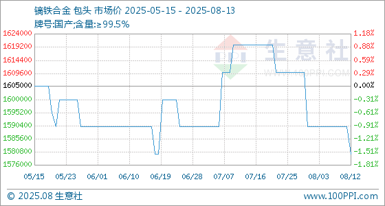 8月13日生意社镝铁合金基准价为1580000.00元/吨