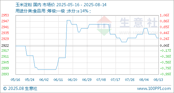 8月14日生意社玉米淀粉基准价为2930.00元/吨