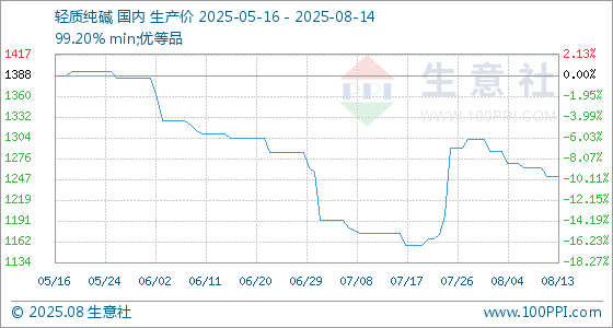 8月14日生意社轻质纯碱基准价为1252.00元/吨