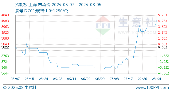 8月5日生意社冷轧板基准价为4010.00元/吨