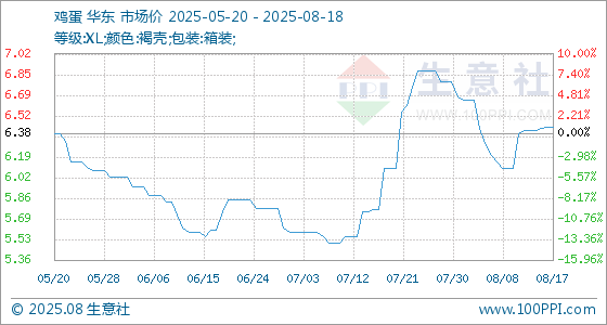 8月18日生意社鸡蛋基准价为6.43元/公斤