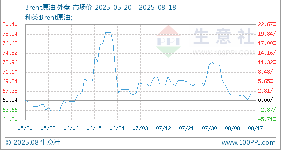 8月18日生意社Brent原油基准价为66.84美元/桶
