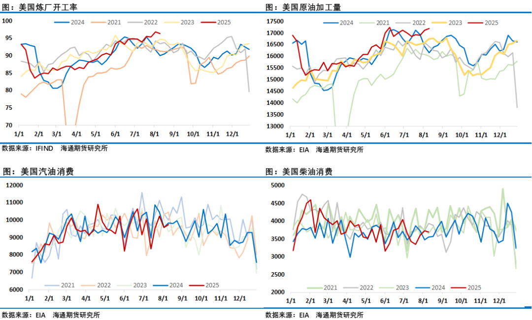 过去一周三大机构先后公布了8月月报,最先公布月报的欧佩克称因需求加速增长,预计明年石油前景将更加紧张。月报中欧佩克月将2025年全球经济增长预测从2.9%上调至3%,2026年全球经济增长预测维持在3.1%。将2025年全球原油需求增速预期维持在129万桶/日,将2026年全球原油需求增速预期从128万桶/日调整至138万桶/日。并判断2026年非欧佩克+供应增长预测下调至63万桶/日(此前预测为73万桶/日),因此明年原油市场供需局面将得到改善。但这份月报并没有给市场带来支撑,油价在欧佩克月报之后继续走低。