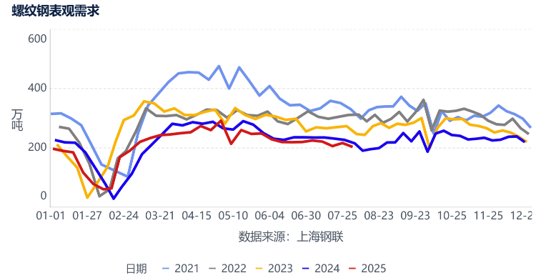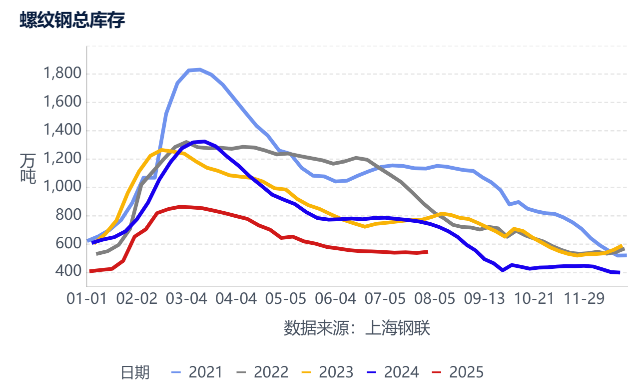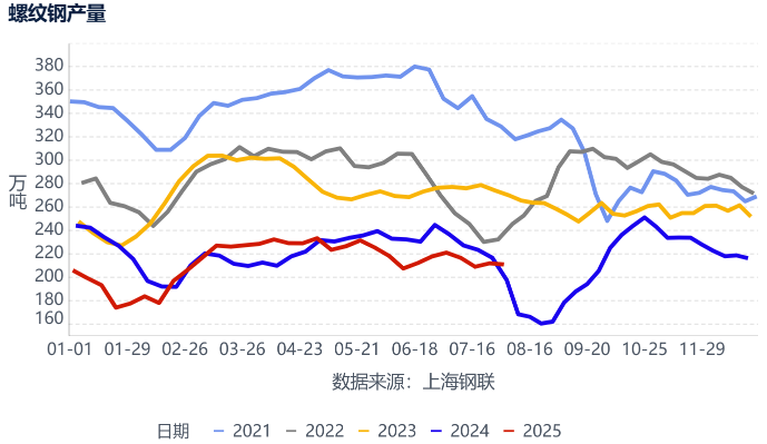 2.供应端,长流程和短流程钢厂利润持续改善,生产意愿逐步提升, 螺纹产量随之而有所回升。但是在“反内卷”政策力度持续加强,以及行业自律控产呼声持续加大的环境下,螺纹钢产量预计将维持稳定,保持在低位水平运行。