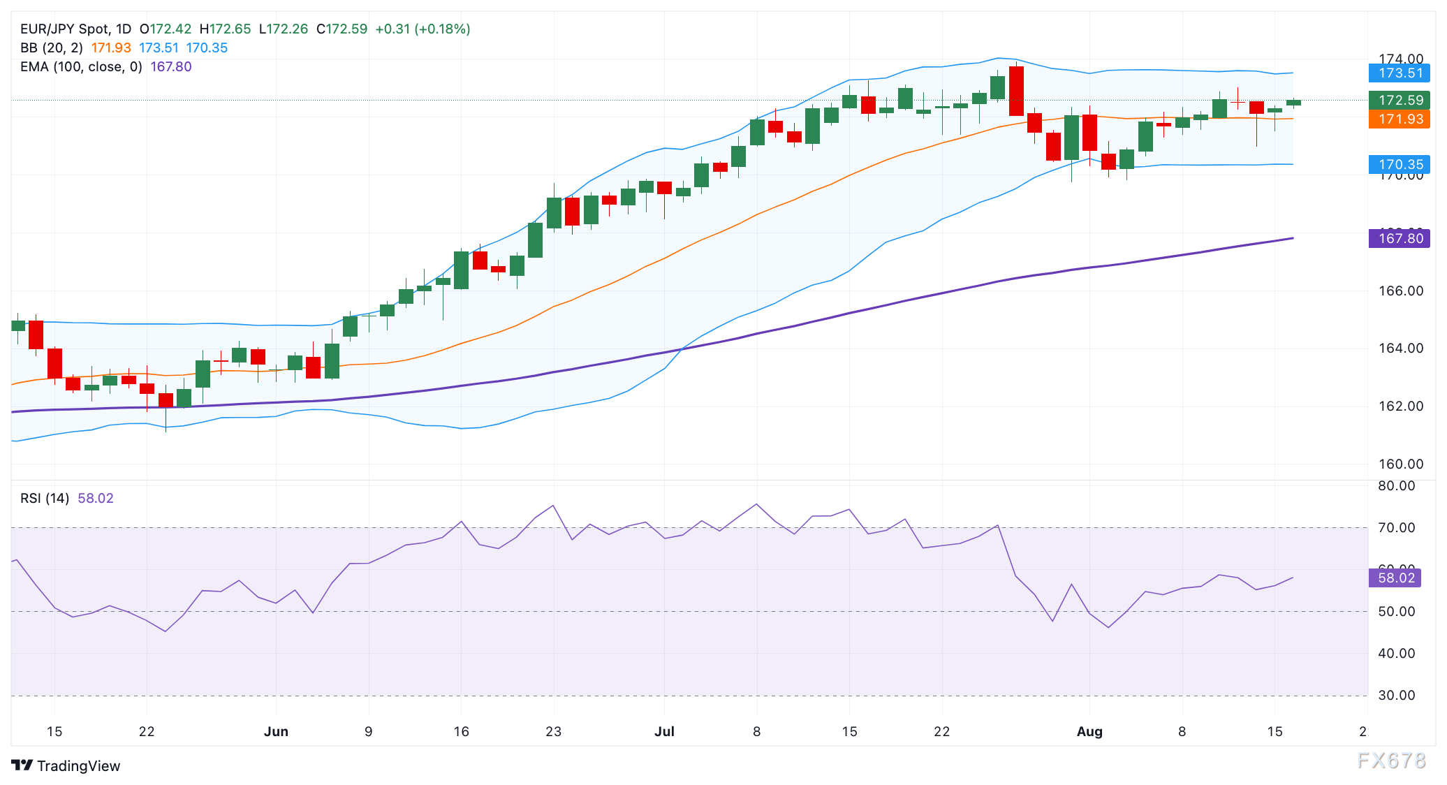 汇通财经APP讯——周一(8月18日)亚市时段,欧元兑日元交叉盘攀升至172.50附近,吸引部分买盘入场。日本央行(BoJ)加息时点的不确定性叠加市场风险偏好升温,持续压制避险日元,为交叉盘提供上行动能。市场焦点已转向周三欧洲央行(ECB)行长拉加德即将发表的政策讲话。