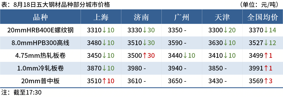 ◎8月18日,唐山迁安普方坯资源出厂含税下调20,报3050。(元/吨)