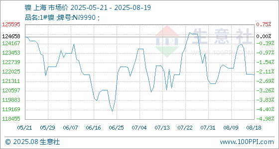 8月19日,生意社镍基准价为121833.33元/吨,与本月初(121466.67元/吨)相比,上涨了0.30%。