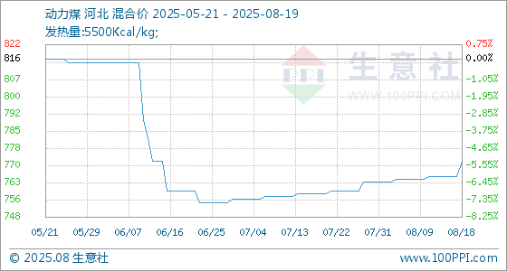 8月19日生意社动力煤基准价为772.50元/吨