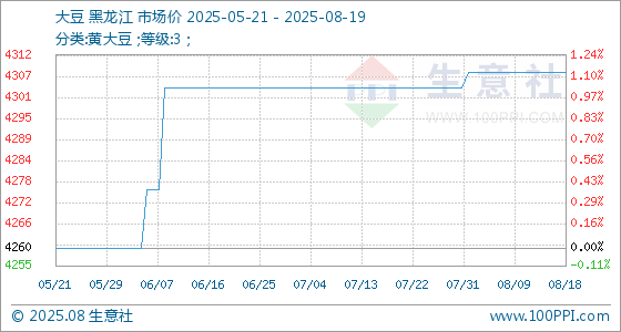 8月19日生意社大豆基准价为4308.00元/吨