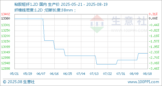 8月19日生意社粘胶短纤1.2D基准价为13040.00元/吨