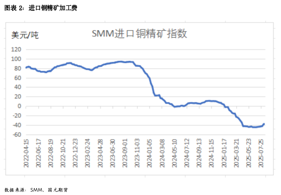 供应方面,Codelco旗下El Teniente铜矿此前因坍塌事故暂停运营,上周重启部分井下作业以及加工活动。SMM报出的周度进口铜精矿加工费来看,截至8月15日当周,进口铜精矿加工费报-37.68美元/干吨,环比前一周上涨0.38美元/干吨,进口铜精矿加工费虽然持续处于负数区间,且近期海外矿山面临诸多干扰情况下,加工费负值收窄,可见矿石供应忧虑情况整体并无进一步压力。