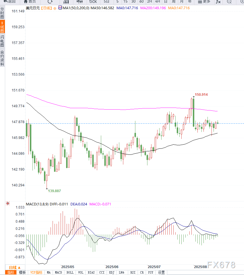 反之,若跌破147.00支撑,可能回落至146.20,甚至进一步下探146.00关口。整体来看,技术面中性偏震荡,需等待消息面驱动突破。