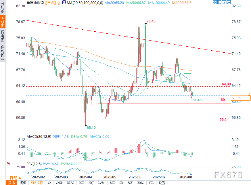 汇通财经APP讯——周二(8月19日),WTI原油期货价格盘中下跌约1%,报62.04美元每桶,价格始终处于关键技术阻力位下方,且价格走势偏向下跌。
