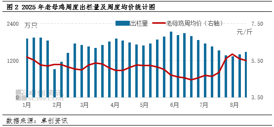 根据卓创资讯监测的数据显示,短期鸡蛋价格受供需双方面压力影响,存下跌预期,虽进入9月后,仍有中秋需求的拉动,但考虑到8-9月持续增加的存栏量以及冷库蛋的冲击,9月鸡蛋价格冲高幅度有限,同时玉米、豆粕等主要养殖成本并未出现趋势性下跌的预期,养殖成本支撑依然较强。在缺乏强有力的、能够推动蛋价持续显著回升的需求增量出现之前,养殖盈利难有明显回温。这也将导致更多的养殖企业产生淘汰老母鸡的想法。同时中秋、国庆双节是传统的鸡蛋消费旺季,各环节于节前完成备货后,市场需求往往在节后出现明显的季节性回落。所以养殖企业为了避免在节后可能的更深低谷中承受更大的损失,更倾向于节前进行淘汰适龄蛋鸡,以锁定部分收益。故从供应方面来看,老母鸡出栏量仍有增加预期。
