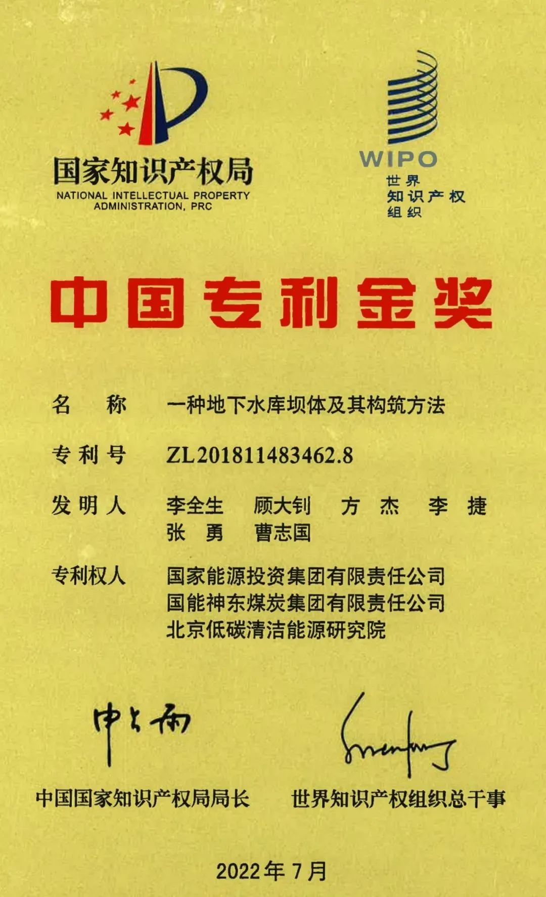 专利成果获第二十三届中国专利金奖