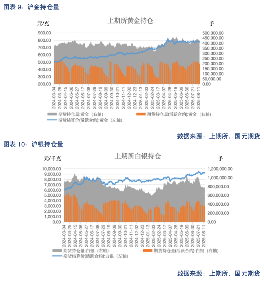 截至8月15日当周,沪金主力期货持仓量为197655 手,较上周减少22666手;沪银主力期货持仓量为346128手,较上周减少27826手。