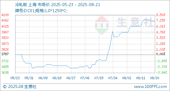 8月21日生意社冷轧板基准价为4060.00元/吨