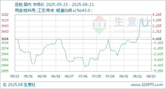 8月21日生意社豆粕基准价为3124.00元/吨