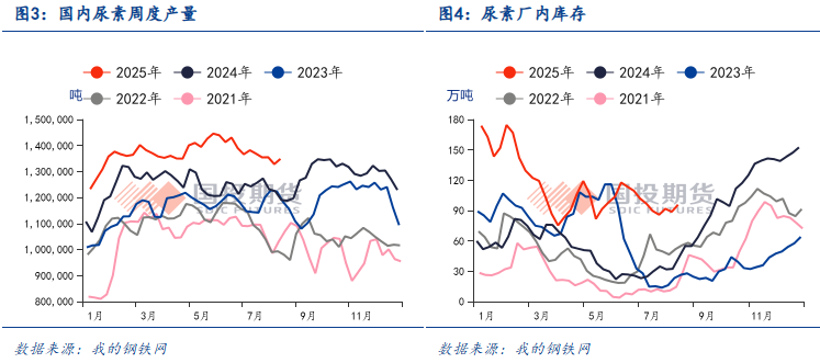 基本面来看,国内尿素供应充足延续,虽然近期装置检修较多,但新装置投产带来的增量明显,日产同比持续偏高。农业需求进入淡季,下游逢低采购为主,短期工业复合肥需求对行情的提振力度一般,国内尿素企业库存处于同期高位。