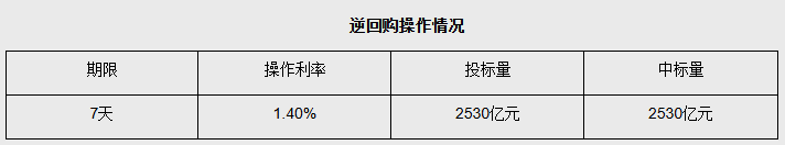 央行开展2530亿元7天期逆回购操作,净投放1243亿元
