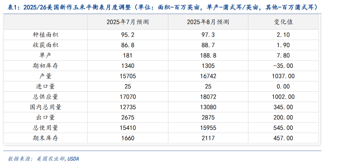 【点评报告】2025年8月USDA玉米供需报告解读
