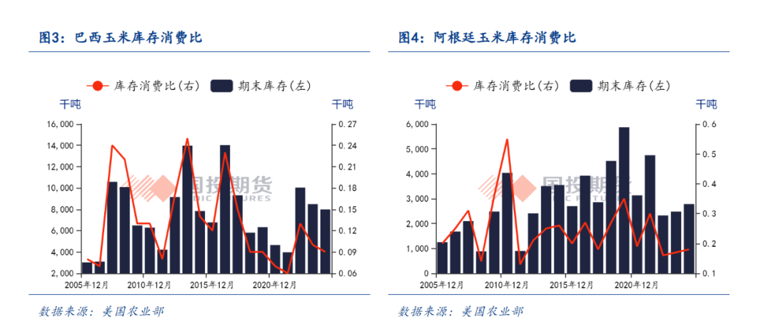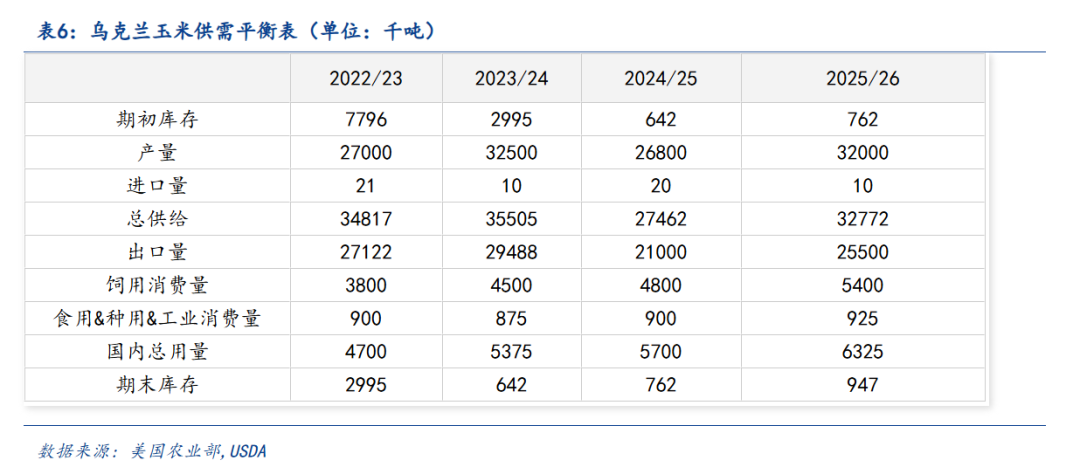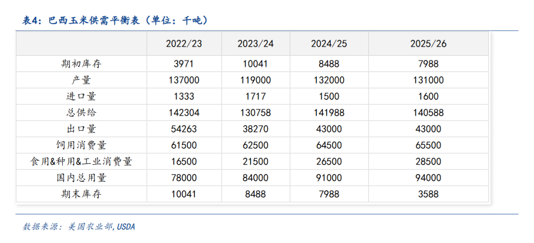 具体来看,美国方面,USDA预计种植面积为9730万英亩,较上月上升了210万英亩。单产数据由趋势单产的181蒲式耳/英亩提升至创纪录的188.8蒲式耳/英亩。最终2025/26年度美国玉米产量为167.42亿蒲式耳,较7月上升了10.37亿蒲式耳,增幅为6.6%,打破了有史以来的美玉米产量记录。期初库存虽下降,但美国国内总供应量预计较上月上升10.02亿蒲。总需求同样上升了5.45亿蒲,无奈不及供应涨幅,美国玉米期末库存为21.17亿蒲,较上月预估增加了4.57亿蒲式耳。库存数据大幅高于报告前路透等机构的调查预计数据平均值。
