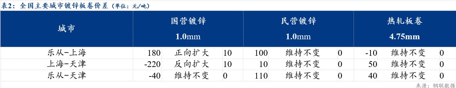 【区域价差】国营资源:乐从-上海价差为180元/吨,上海-天津价差倒挂220元/吨,乐从-天津价差倒挂40元/吨。民营资源:乐从-上海价差为100元/吨,上海-天津价差为10元/吨,乐从-天津价差为110元/吨。