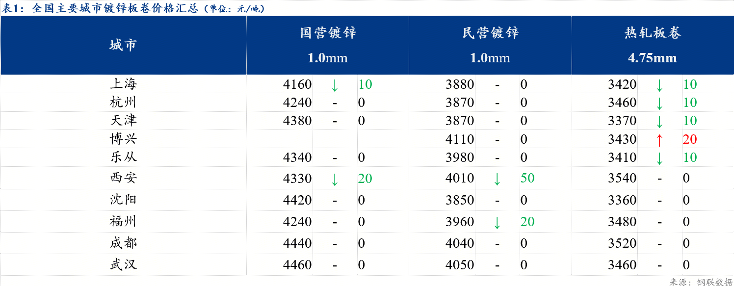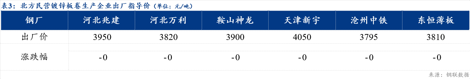 【钢厂调价】今日各地区民营镀锌钢厂出厂价格多数持稳,北方资源出厂价在3850元/吨左右。