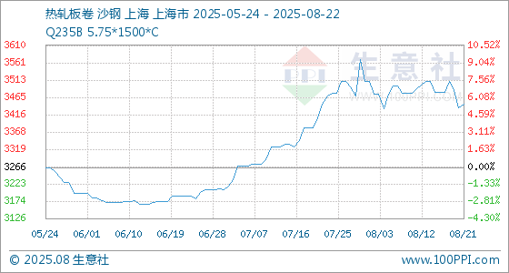 8月22日生意社热轧板卷基准价为3446.67元/吨