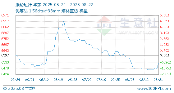 8月22日生意社涤纶短纤基准价为6528.54元/吨