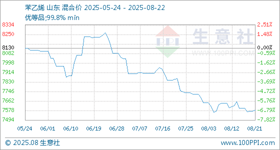 8月22日生意社苯乙烯基准价为7582.00元/吨
