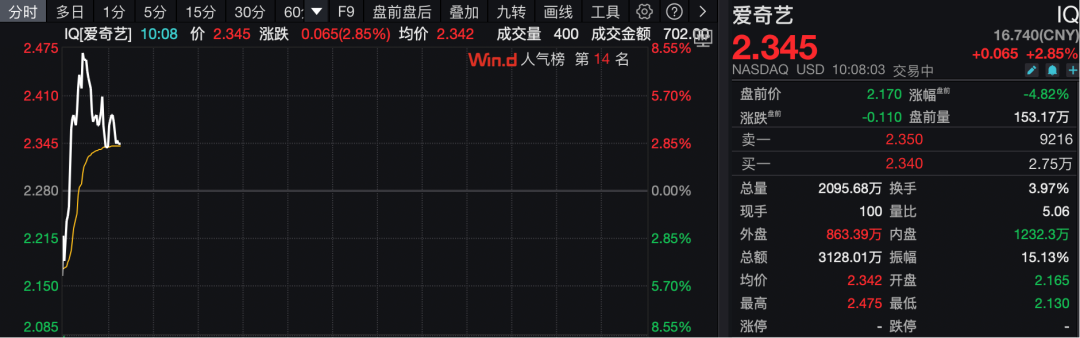 纳斯达克中国金龙指数微跌,热门中概股涨跌互现。爱奇艺一度涨超8%,百度跌超3%,小鹏汽车跌超2%。